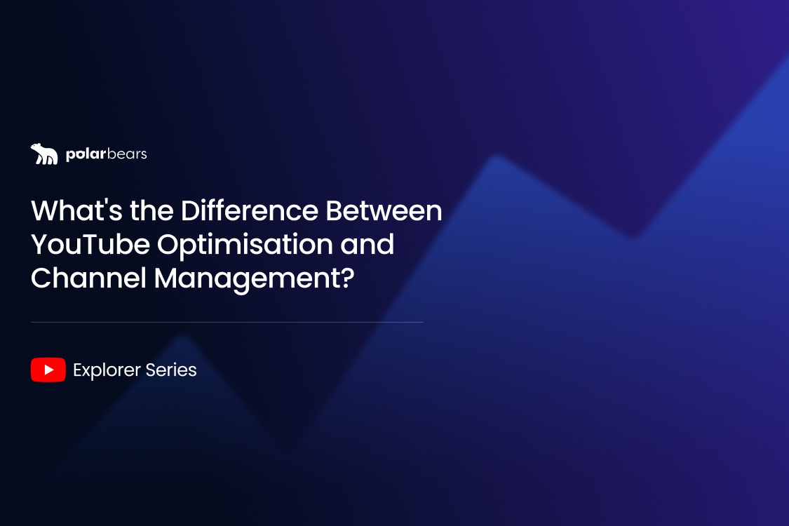 YouTube video optimisation focuses on individual videos: titles, descriptions, tags, thumbnails, and chapters. Channel management is broader, covering publishing schedules, content calendars, analytics reporting, and strategic oversight across your entire channel. The Polar Bears offers both: video optimisation from as little as £3.33, or full service channel management from £1,625/month.